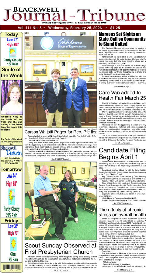 The City of Blackwell will host a Community-Wide Health Fair on Wednesday, March 25, 2026,...